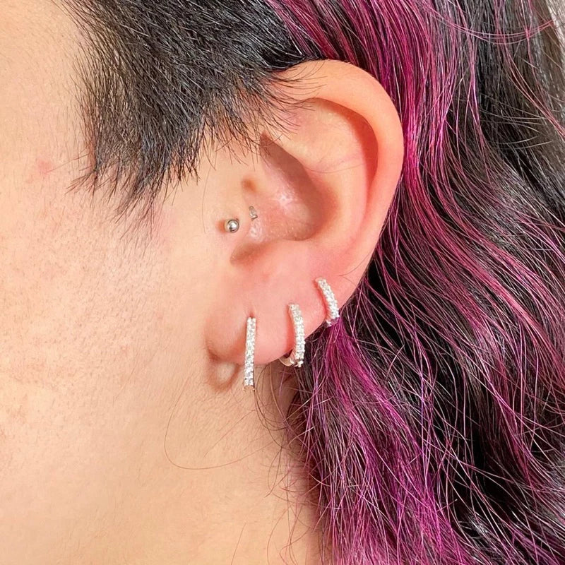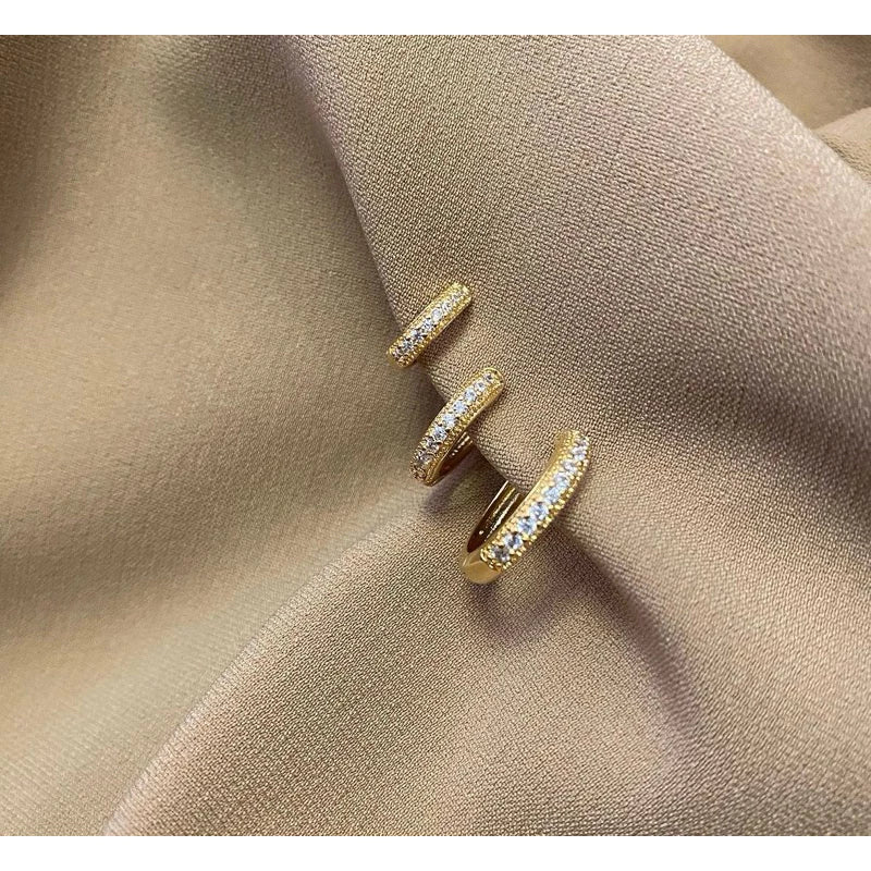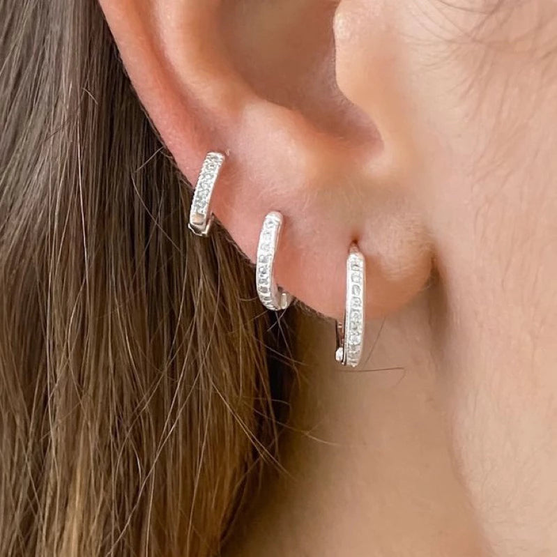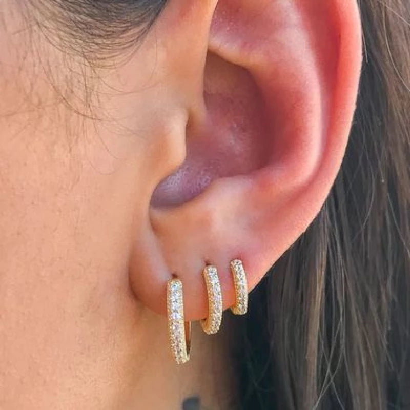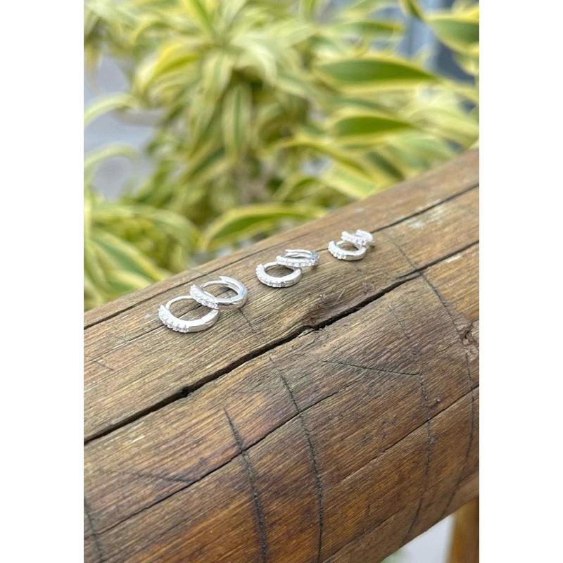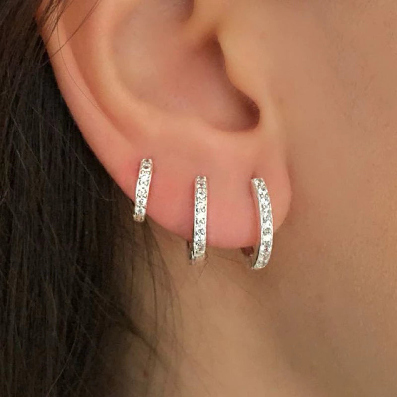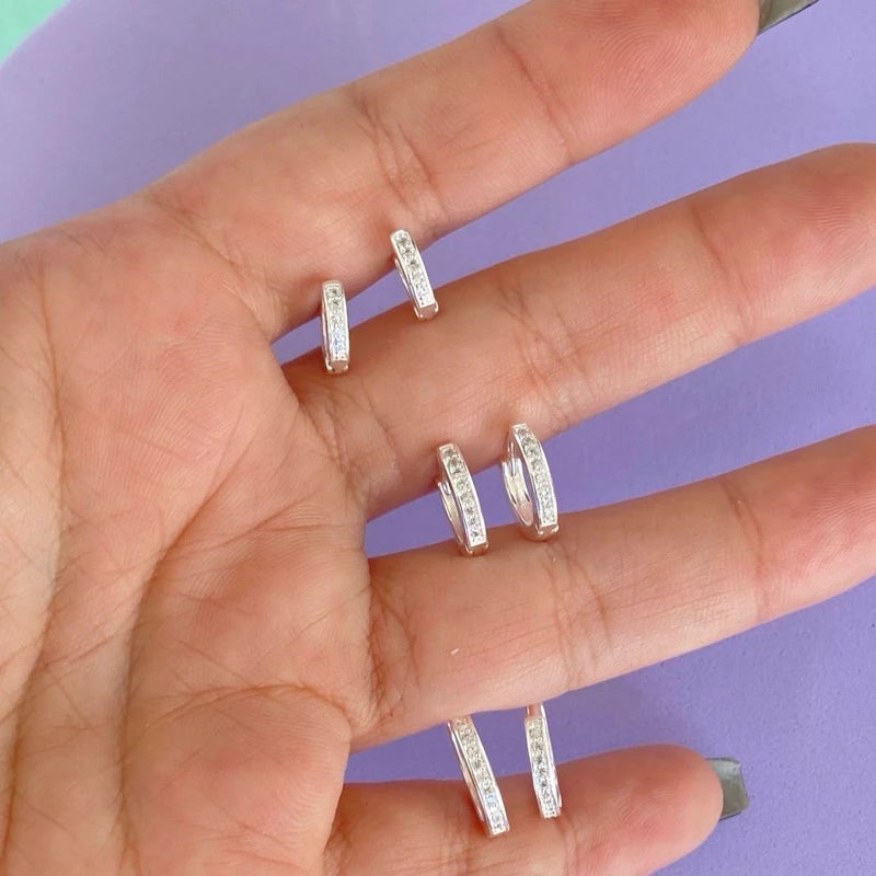 Brinco Trio Argola BANHADA A PRATA 925 com Zircônia Cravejada Kit 3 pares / Trio de ARGOLINHAS FOLHEADAS Á PRATA 925 TOP