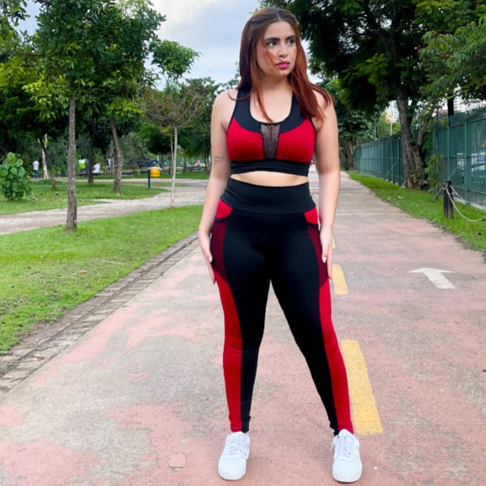 Design Moderno: O conjunto inclui um top com suporte ideal e uma calça que modela o corpo, ideal tanto para treinos intensos quanto para momentos de lazer.