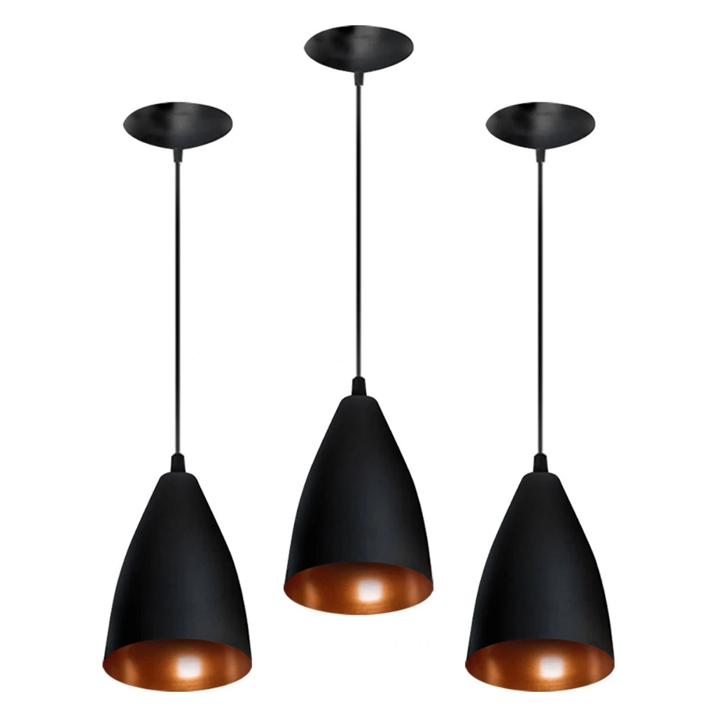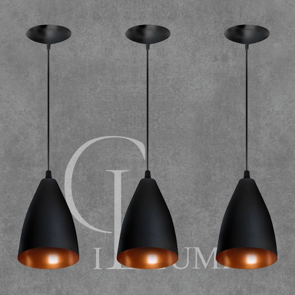 Kit 3 Pendentes Vegas (preto Textura / Bronze)