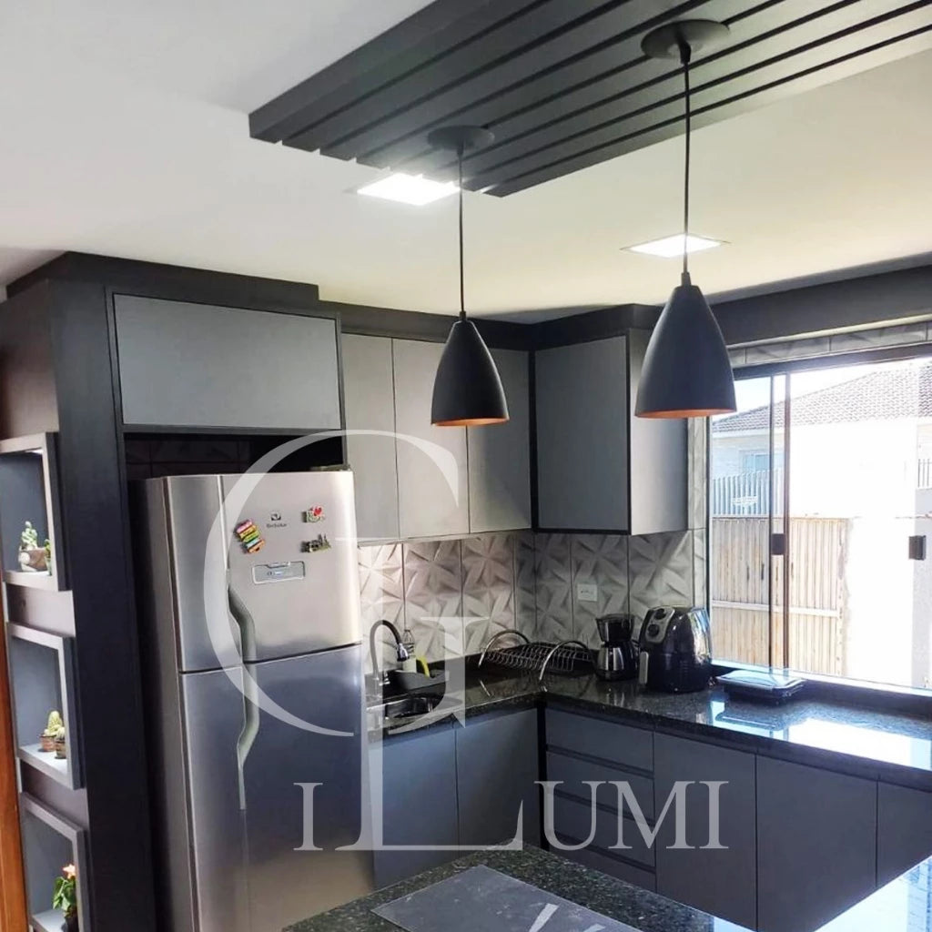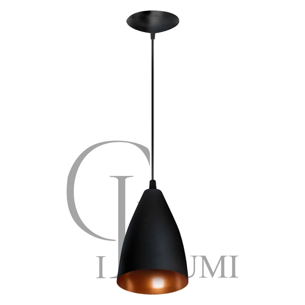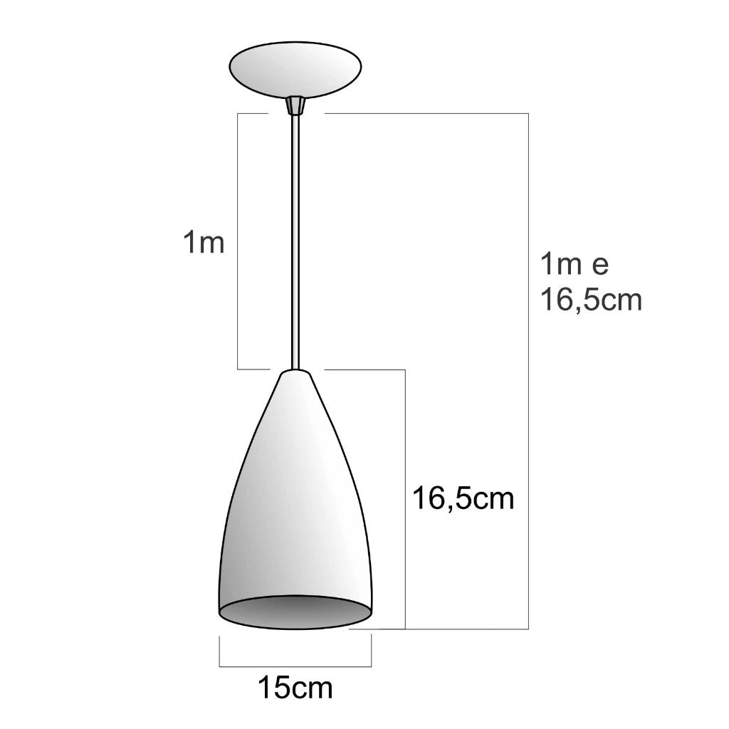 Luminária com acabamento de teto individual, fabricada em alumínio, material altamente resistente ao tempo, 100% Alumínio (não enferruja), composta por Cabo Pp com tamanho ajustável, soquete E-27, Acabamento de teto individual de 12,5cm.