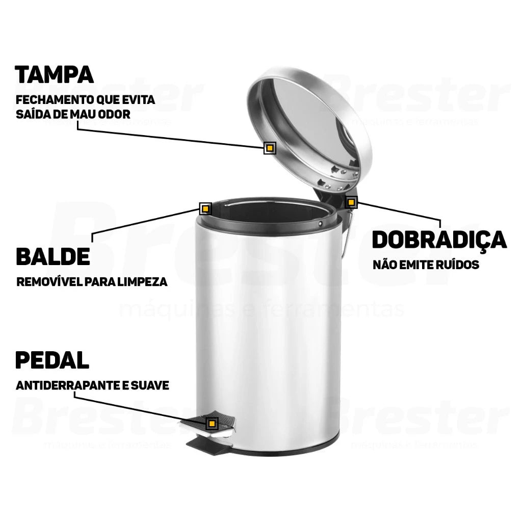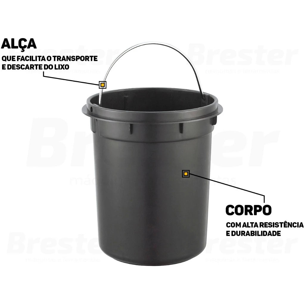 - Alça e Pedal: O sistema de pedal permite abrir a lixeira sem tocar, garantindo mais higiene e conforto, ideal para descartar fraldas de bebê ou restos de alimentos.