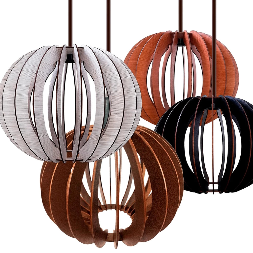 LUMINARIA TETO LUSTRE PENDENTE BOLA DE MADEIRA
