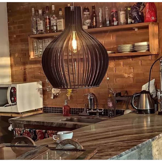 Apresentamos o pendente luminária de madeira, uma peça sofisticada e elegante que irá adicionar um toque de charme e estilo ao seu espaço. Com medidas de 28 x 34 cm, este pendente é perfeito para iluminar áreas específicas com um toque de rusticidade e beleza natural.