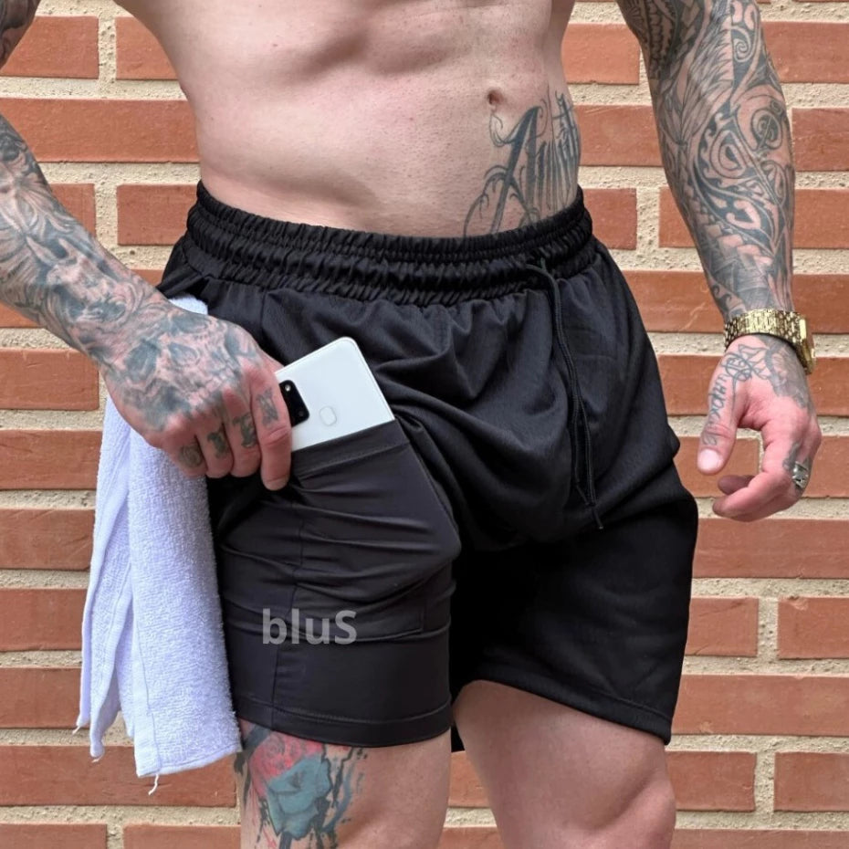 Shorts Academia 2 Em 1 Forrado Com Bolso Extra Bermuda Masculina Carnaval