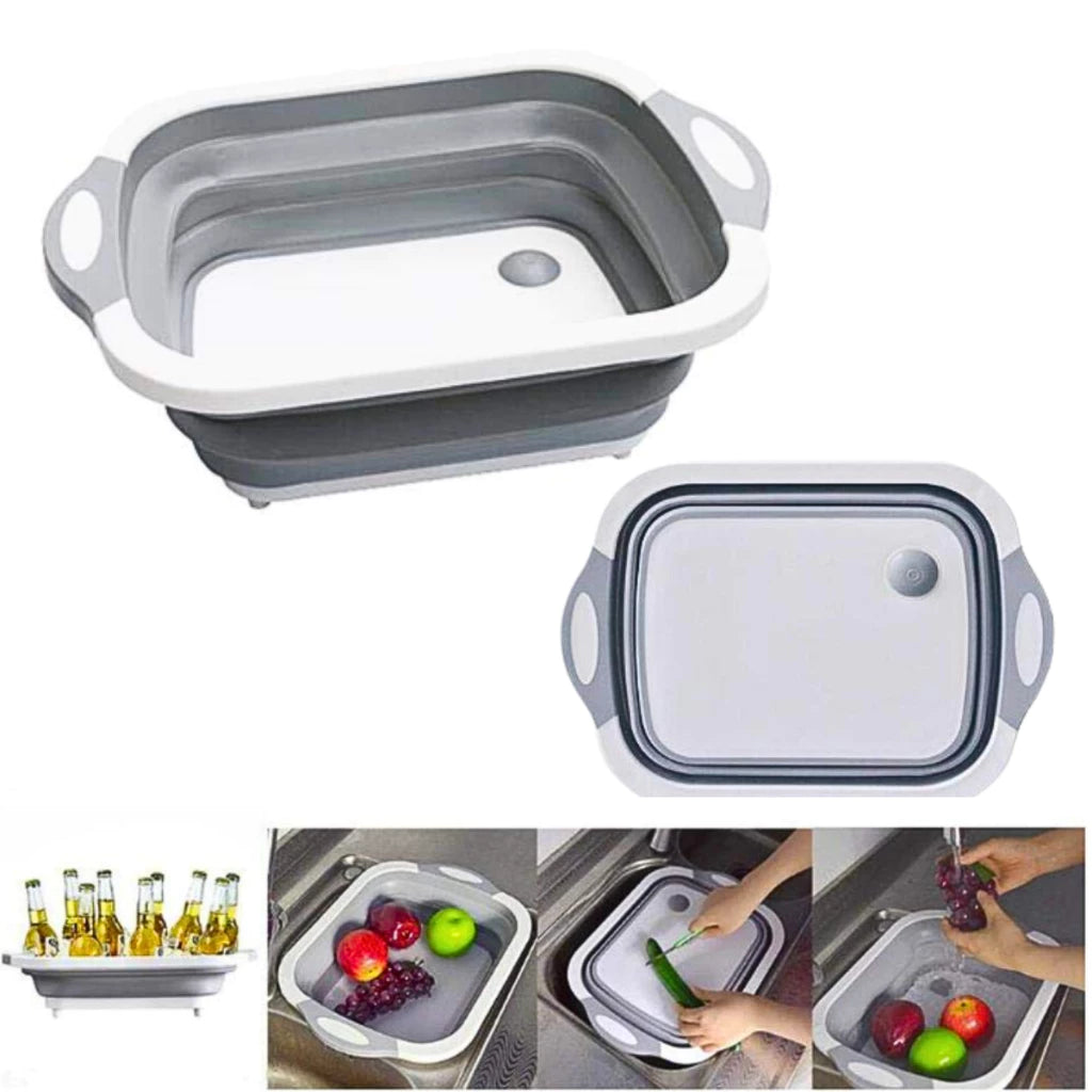 1 Tábua Bacia Cesta Retrátil Silicone Multifuncional Cozinha 3 Em 1 Esta Tábua multiuso tem o tamanho médio ideal e funcional para corte. É perfeita para lavar louça, guardar frutas, lavar vegetais e para uso externo como balde de gelo para casa e até churrascos! Experimente uma maneira inteligente e prática de cortar e lavar vegetais e frutas com nossa tábua de corte multifuncional hoje! - Multifuncional: perfeita para lavar louças, armazenar frutas, lavar vegetais - Portátil e prática: fácil de guardar quando não está em uso - Seu sistema “um clique” permite que a água utilizada na lavagem dos alimentos seja drenada em segundos! - Fácil de limpar: uma esponja com sabão já é o suficiente para lavar esta tábua multifuncional - O material utilizado na fabricação não retém odores - A tábua tem 40 centímetros de largura, 30 cm de altura e 13 cm de profundidade quando dobrada - Tamanho: 40 cm x 30 cm - Material: plástico e borracha siliconada - Conteúdo da embalagem: 1 x tábua de corte