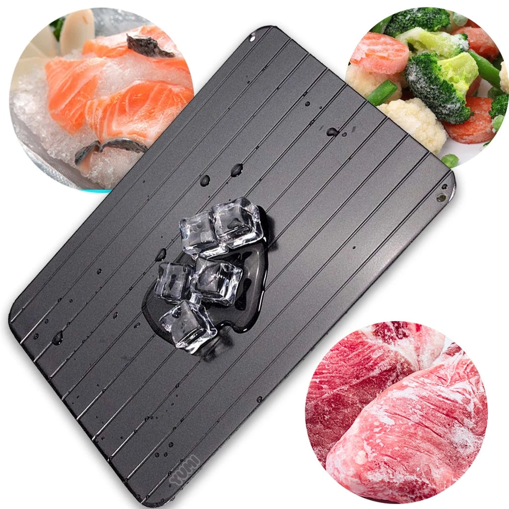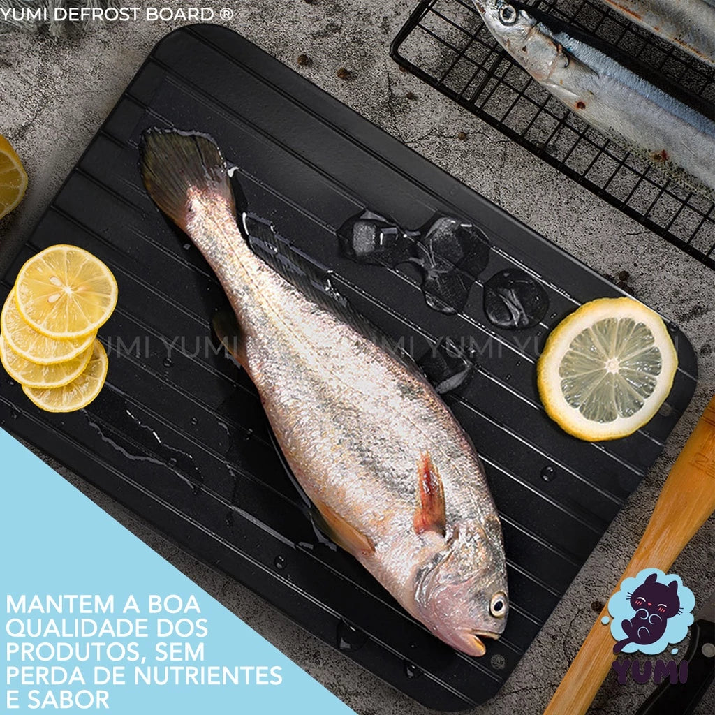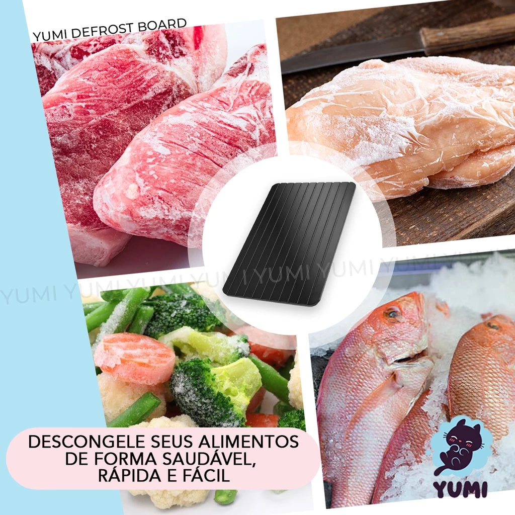 Fast Defrost YUMI descongela carne vermelha, frango, peixe, hambúrguer, carne de porco, vegetais e até refeições completas, em minutos!