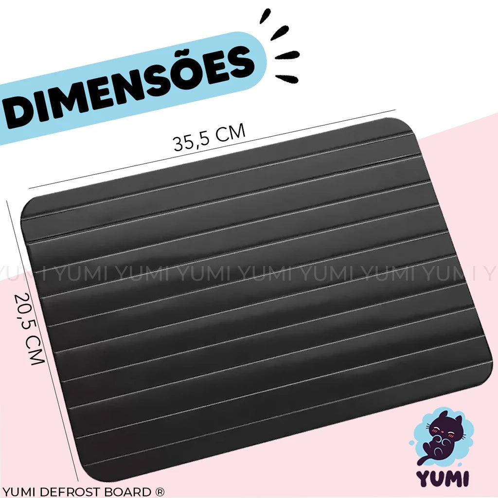 Fast Defrost YUMI é diferente de tudo o que já viu, porque possui uma tecnologia inovadora que reúne as propriedades do Alumínio, que garante altíssima eficiência na condução térmica, transferindo o calor ideal para descongelar alimentos uniformemente, mais rápido do que métodos domésticos. E o melhor: sem grudar, graças ao seu poderoso revestimento antiaderente!